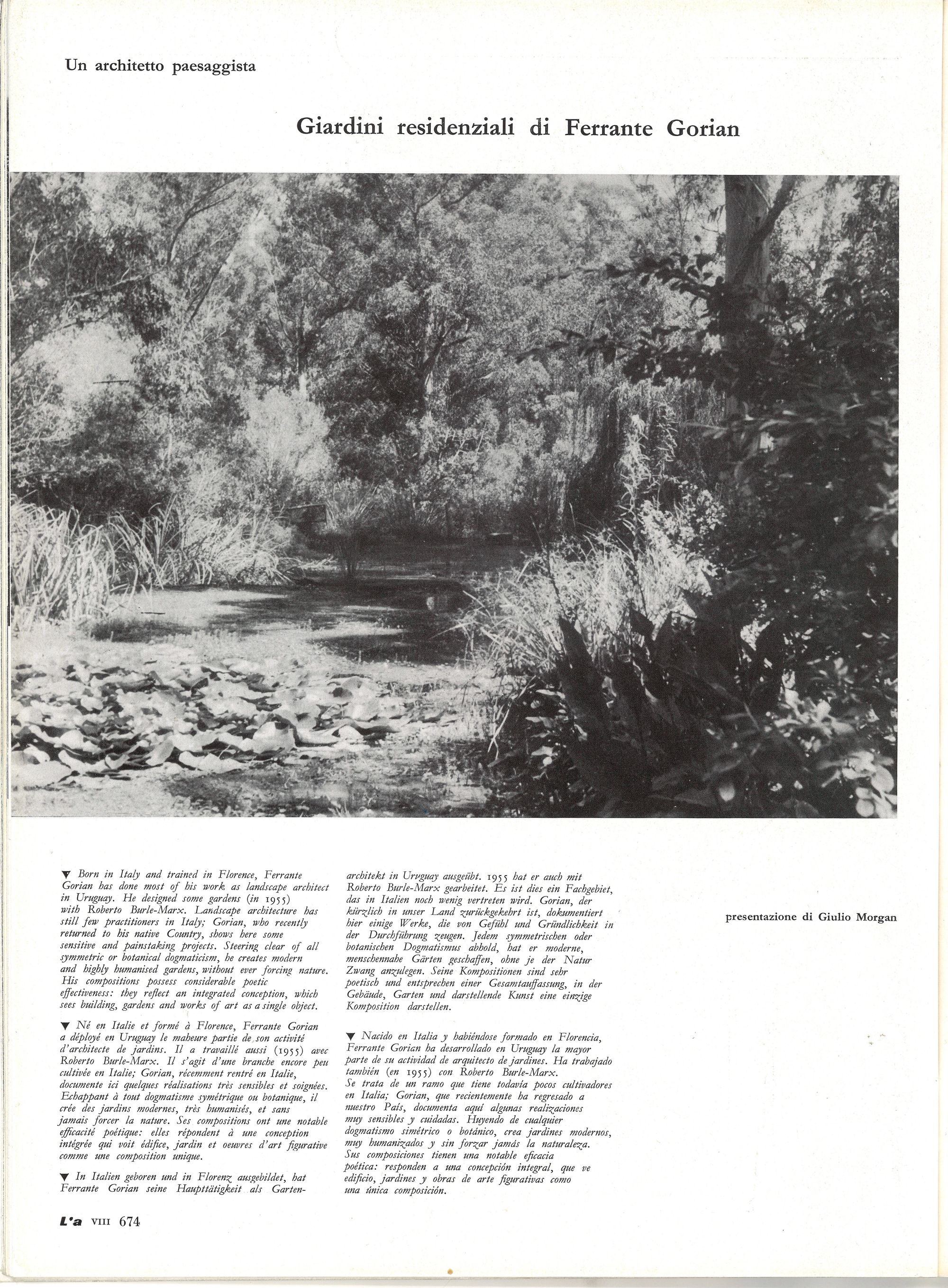Giardini residenziali di Ferrante Gorian Posted on 1 febbraio 1963 by ferrantegorian di Giulio Morgan, tratto dalla rivista “L’Architettura”, n.88 febbraio 1963 Condividi: Fai clic per condividere su X (Si apre in una nuova finestra) X Altro Fai clic per condividere su Facebook (Si apre in una nuova finestra) Facebook Mi piace Caricamento... Correlati