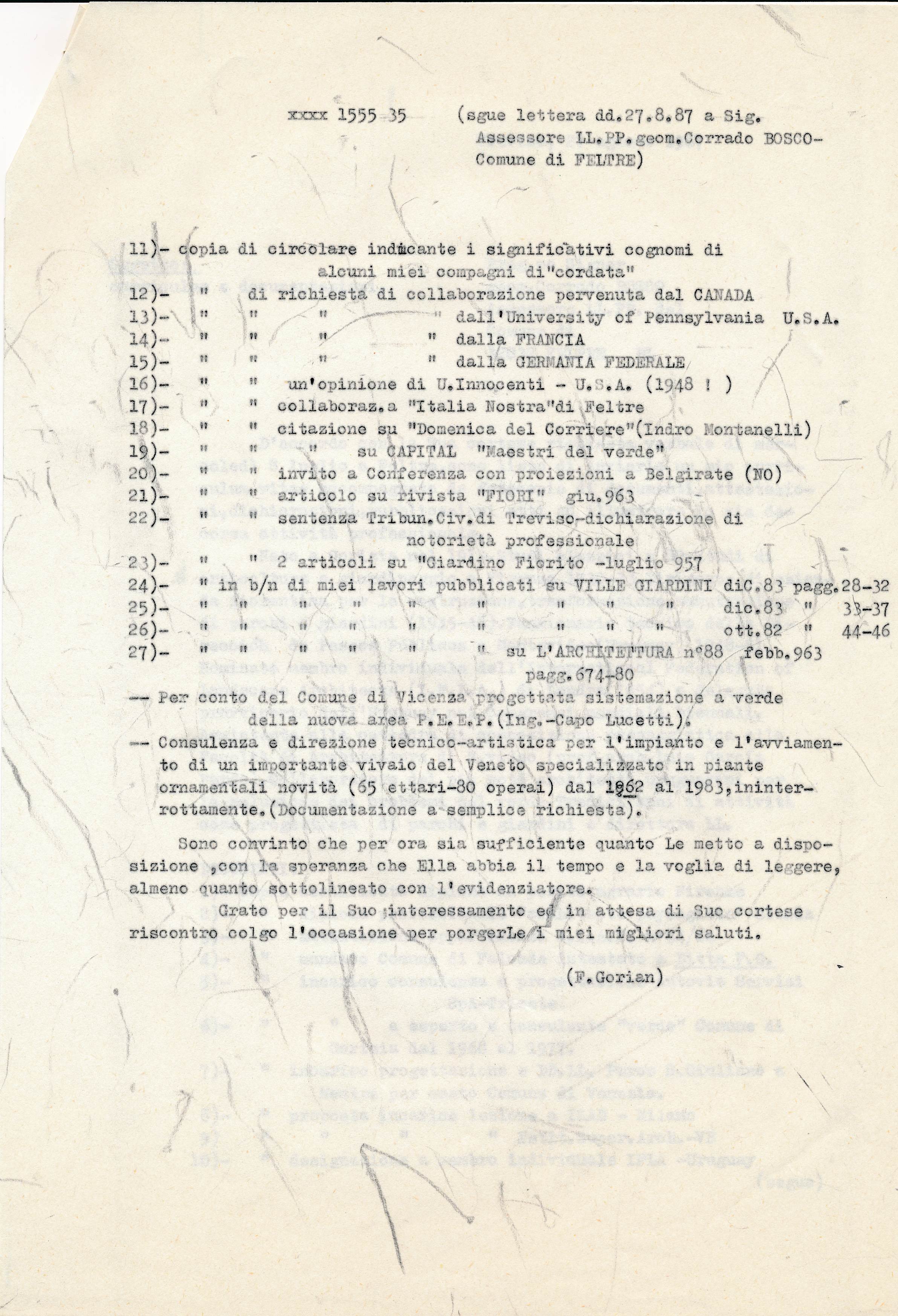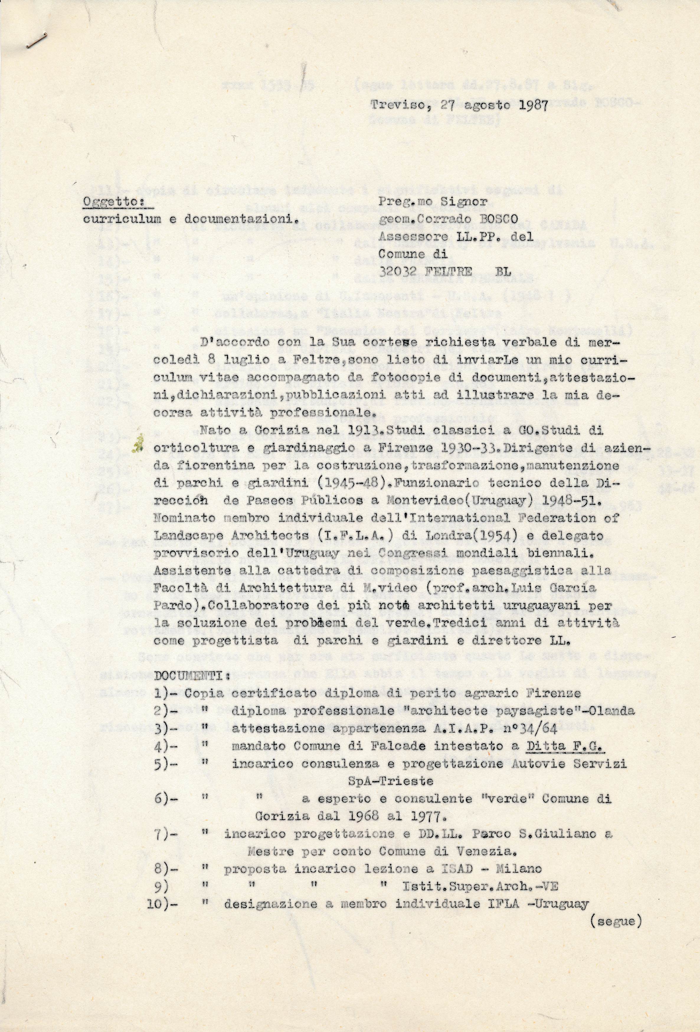 Lettera all’Assessore ai LL. PP. di Feltre (BL) Posted on 19 agosto 2018 by ferrantegorian Treviso, 27 agosto 1987 Curriculum e documentazioni Condividi: Fai clic per condividere su X (Si apre in una nuova finestra) X Altro Fai clic per condividere su Facebook (Si apre in una nuova finestra) Facebook Mi piace Caricamento... Correlati